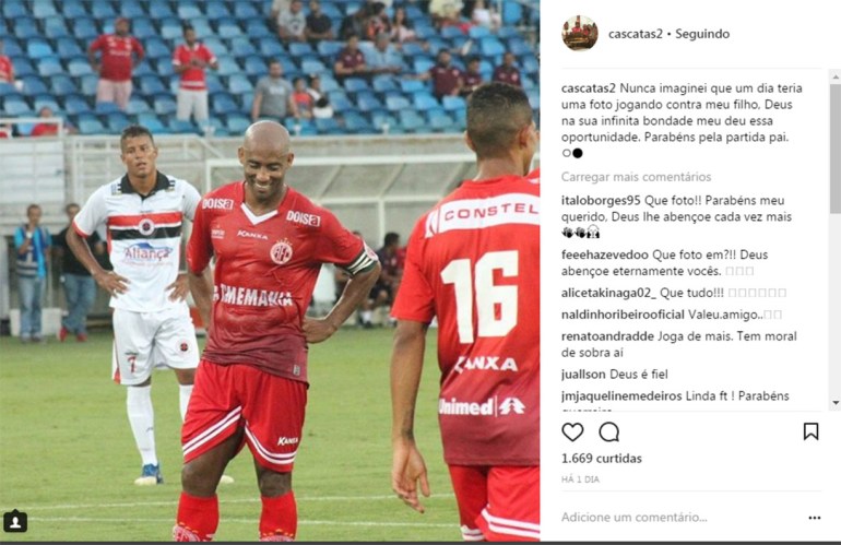 Cascata tem 35 anos e Brendo 21 (eita velho, com 14 anos? hahahaha) e os dois já chegaram a jogar juntos no América-RN. Na primeira vez que se enfrentaram, melhor para o pai, que marcou dois gols e venceu o jogo por 4 a 0.