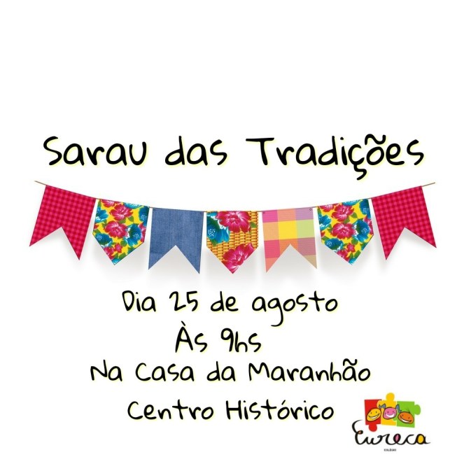 O Colégio Eureca apresenta neste sábado (25) o Sarau das Tradições, que marca a culminância do projeto O Ser na Tradição. O evento será realizado em local que respira cultura: a Casa do Maranhão, no Centro Histórico de São Luís, às 9h.