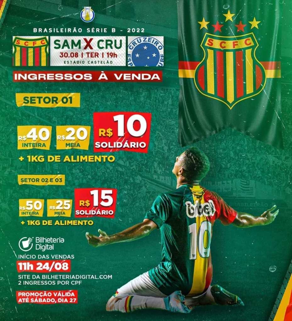 O próximo jogo do Sampaio em casa será nada mais nada menos que diante do todo poderoso e líder Cruzeiro e o Sampaio quer contar com a força da torcida. Para o jogo desta terça-feira, às 19h, no Castelão uma promoção relâmpago, que tem validade até este sábado.