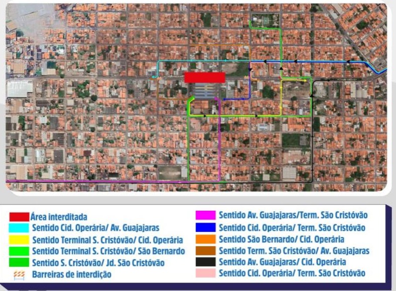 O acesso ao terminal será feito pela Rua Nova Jerusalém (esquina com Rua 9) e a saída pela Rua Cônego Ribamar Carvalho (esquina com a Rua 9), vias que ficam aos fundos do Terminal de Integração do São Cristóvão.