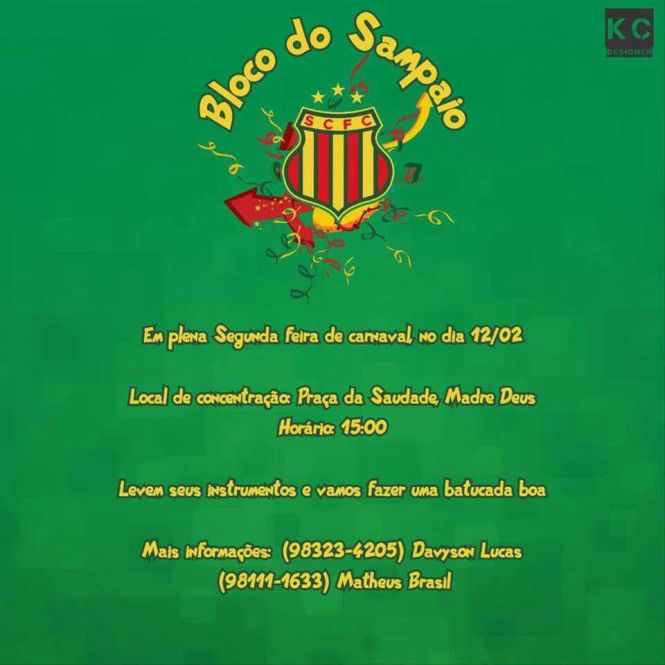 A organização do bloco convida todos os foliões tricolores e pede que quem puder leve sua fantasia e seu instrumento. Mais informações poderão ser obtidas pelo seguintes telefones: (98) 9 8323-4205 e (98) 9 8111-1633.